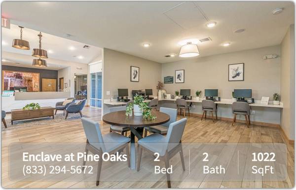 Here at Enclave at Pine Oaks, our community offers quiet, comfortable and convenient living at a reasonable price. An outstanding management team will insure prompt service and a second-to-none experience. Our beautiful apartment homes feature spacious 2, 3 and 4 bedroom layouts, in-home washer & dryer rental program & large bedrooms with walk-in closets. Residents at Enclave at Pine Oaks also get to enjoy a number of community perks including a outdoor swimming pool, community computer/media center, outdoor playground area and more!
