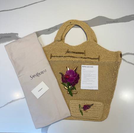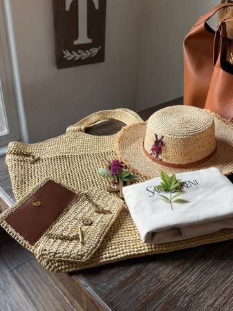 YSL Raffia beach bags matching wallets and raffia hats available as a set. Several bags available from $50 to $250 find me on TikTok moncheri.2025 or Pinterest under Cheri Escobar catalog available...