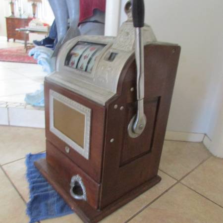 THIS IS VERY OLD 5 CENT BANDIT AND IN VERY GOOD CONDITION CLEAN CONDITION// ONE ARM BANDIT // ORIGINAL CONDITION // SELLING FOR 700 YOU CAN CALL //// 386 895 1 TWO 94///// VERY NICE WORKING...