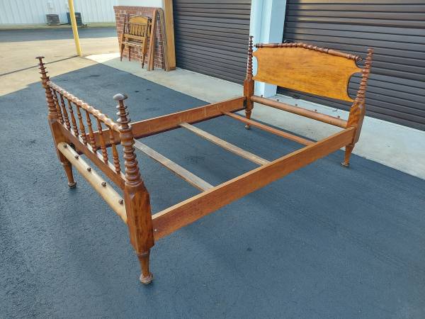 Antique Bobbin Rope Bed Not Quite Full Size - Custom Made Box Springs and Mattress - Very Nice Vintage Antique Condition - Beautiful Turnings - Original Made For Rope to Hold Old Style Feather Mattress - From Non Smoking Home. Measures 53 1/4" Wide x 83" Long and 40 1/4" Tall. Price $195.00. Cash Only. For More Info Call 386 eight four eight six two two 4 or Texts.