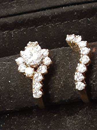Exquisite Two Carat Diamond Wedding Ring for sale....$2599.00 SI1-SI2 Clarity, G-H Color, 3/4 Carat Center Stone, 1 1/4 Carat smaller stones are F Color, SI1 Clarity. Very pretty, and looks "Like New"...wedding ring.